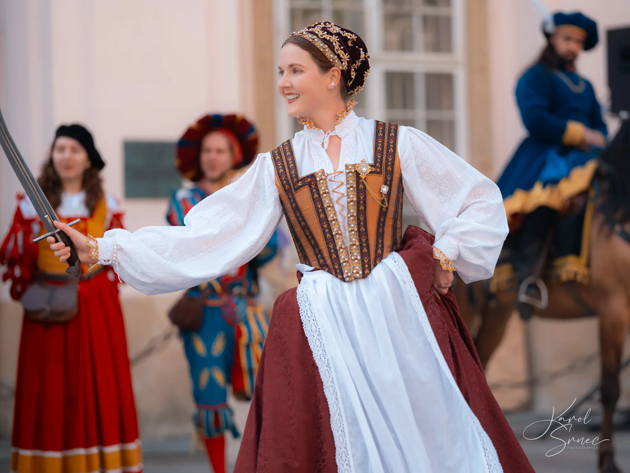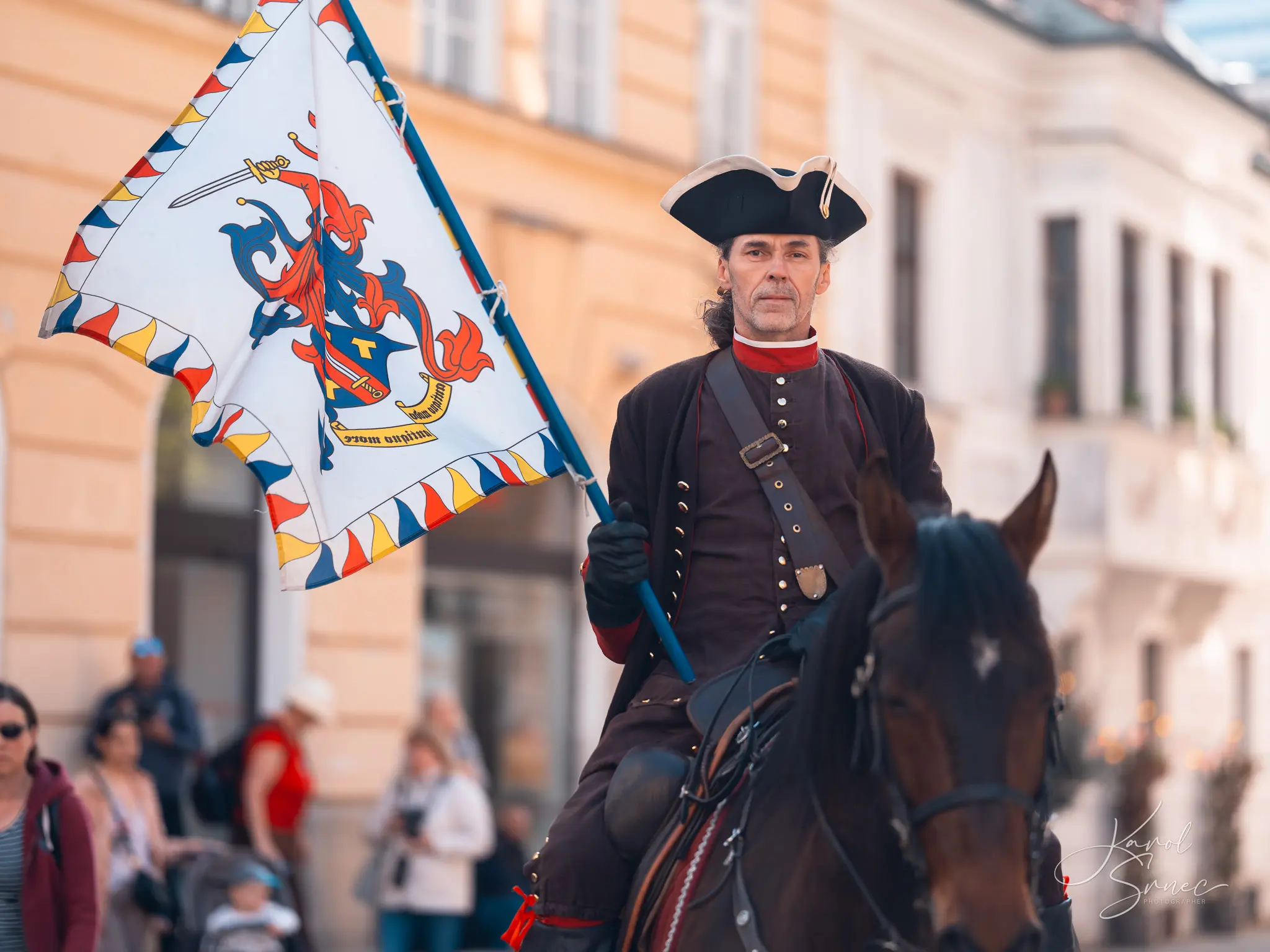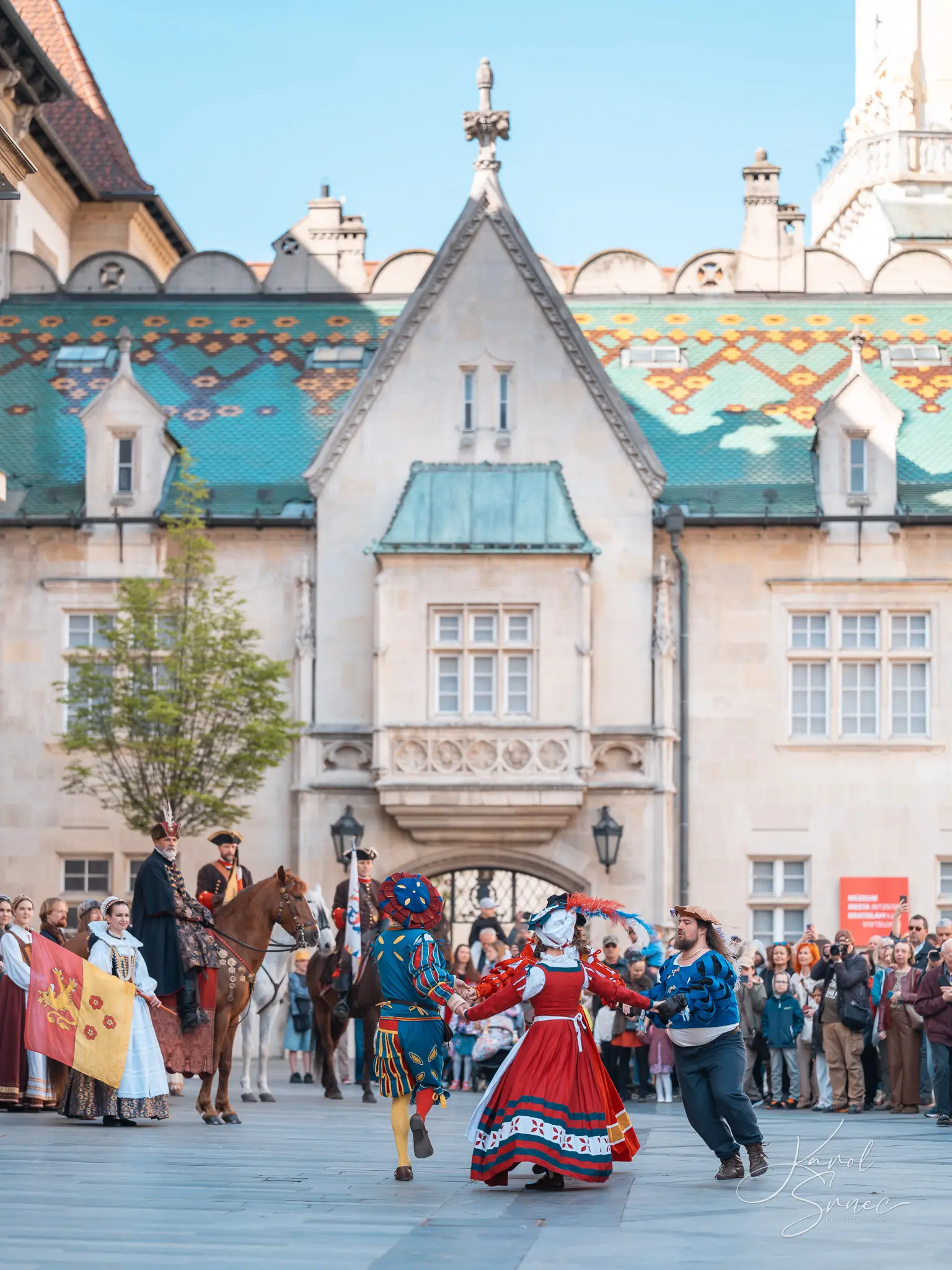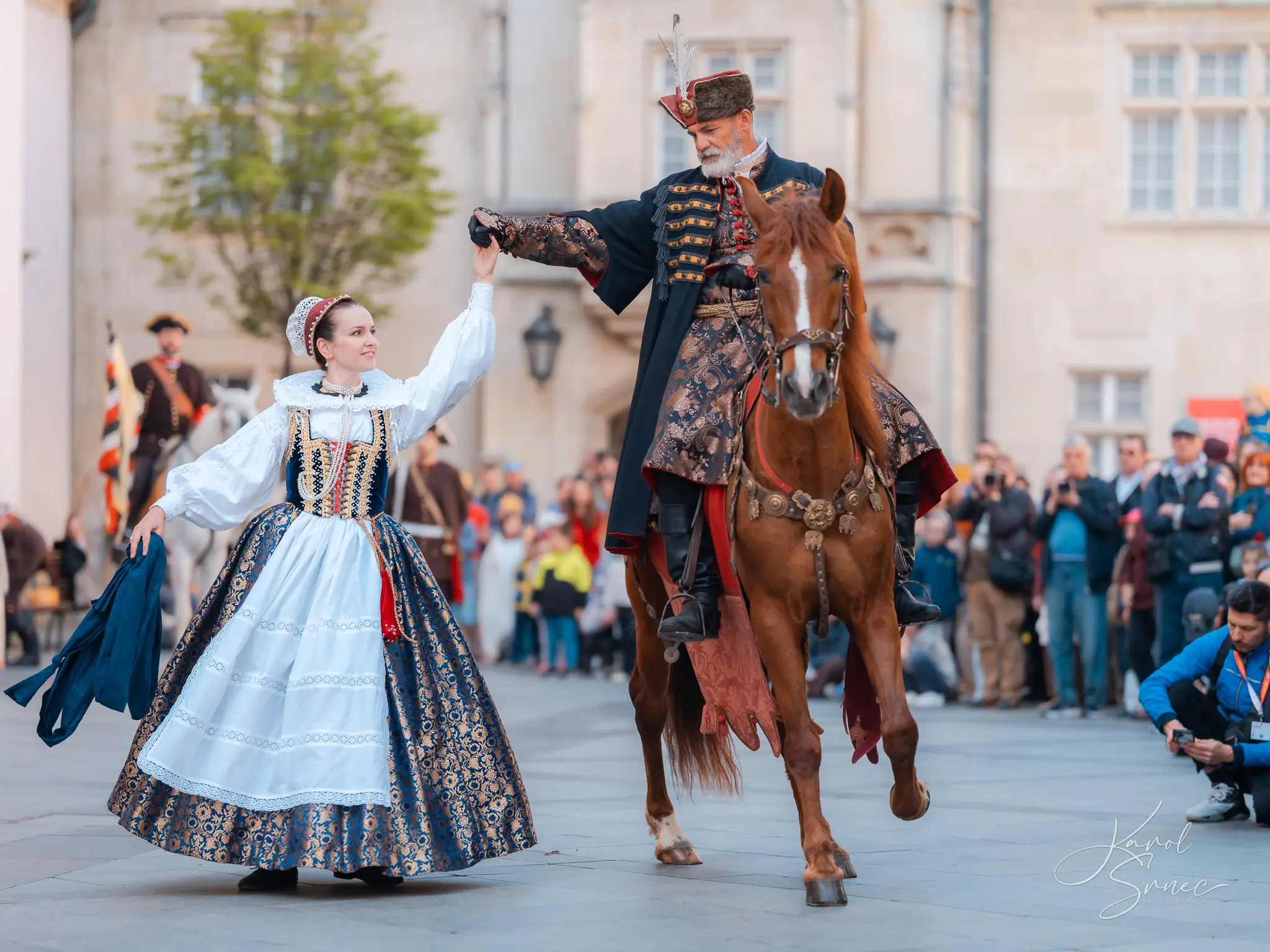 V našom TOSTABUR podaní nechýbal šerm, tanec, vlajkosláva, ani parádni jazdci na svojich tátošoch. Pripomenuli sme si tri slávne epochy bratislavskej histórie, ktorú nám priblížil pán Vladimír Grežo v družnom rozhovore s „duchom brány“ Primaciálneho paláca.