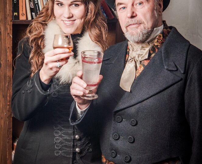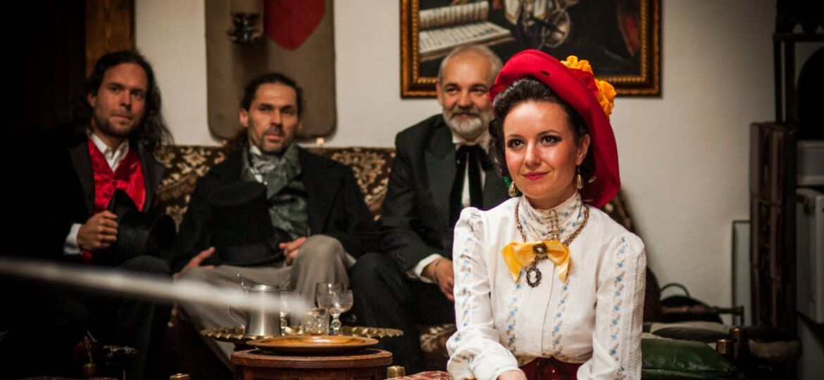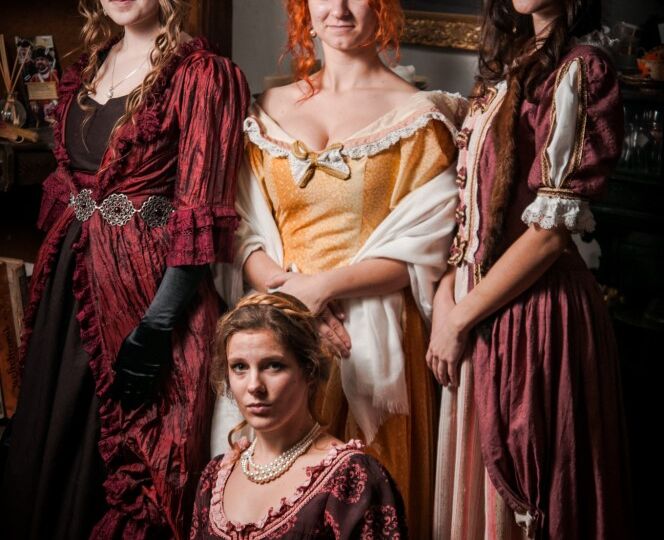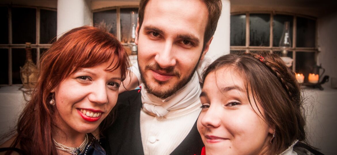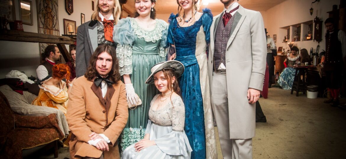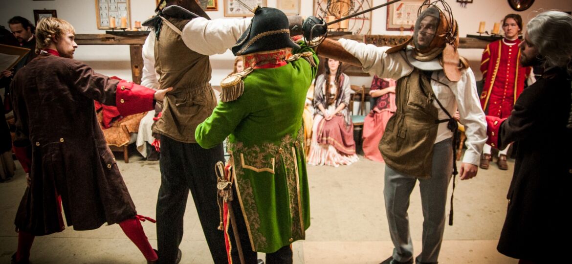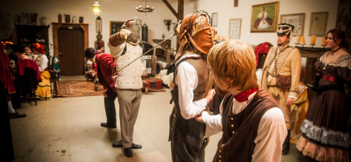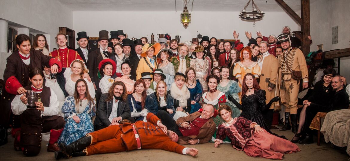 Skvelá spoločnosť – krásne dámy, elegantní páni, skvelé tanečnice i odvážni šermiari….