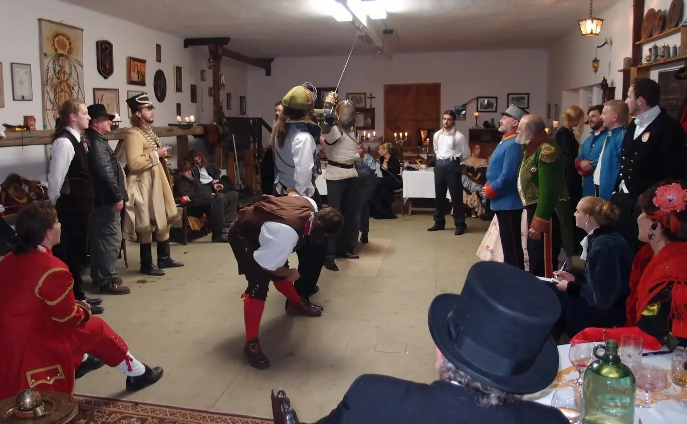 Ide o stretnutia, kde sa účastníci odetí v kostýmoch daného obdobia venujú menzúrnemu šermu, tancu, príjemnej zábave, dobrému jedlu a pitiu – a to v noblesnom duchu 19. storočia.