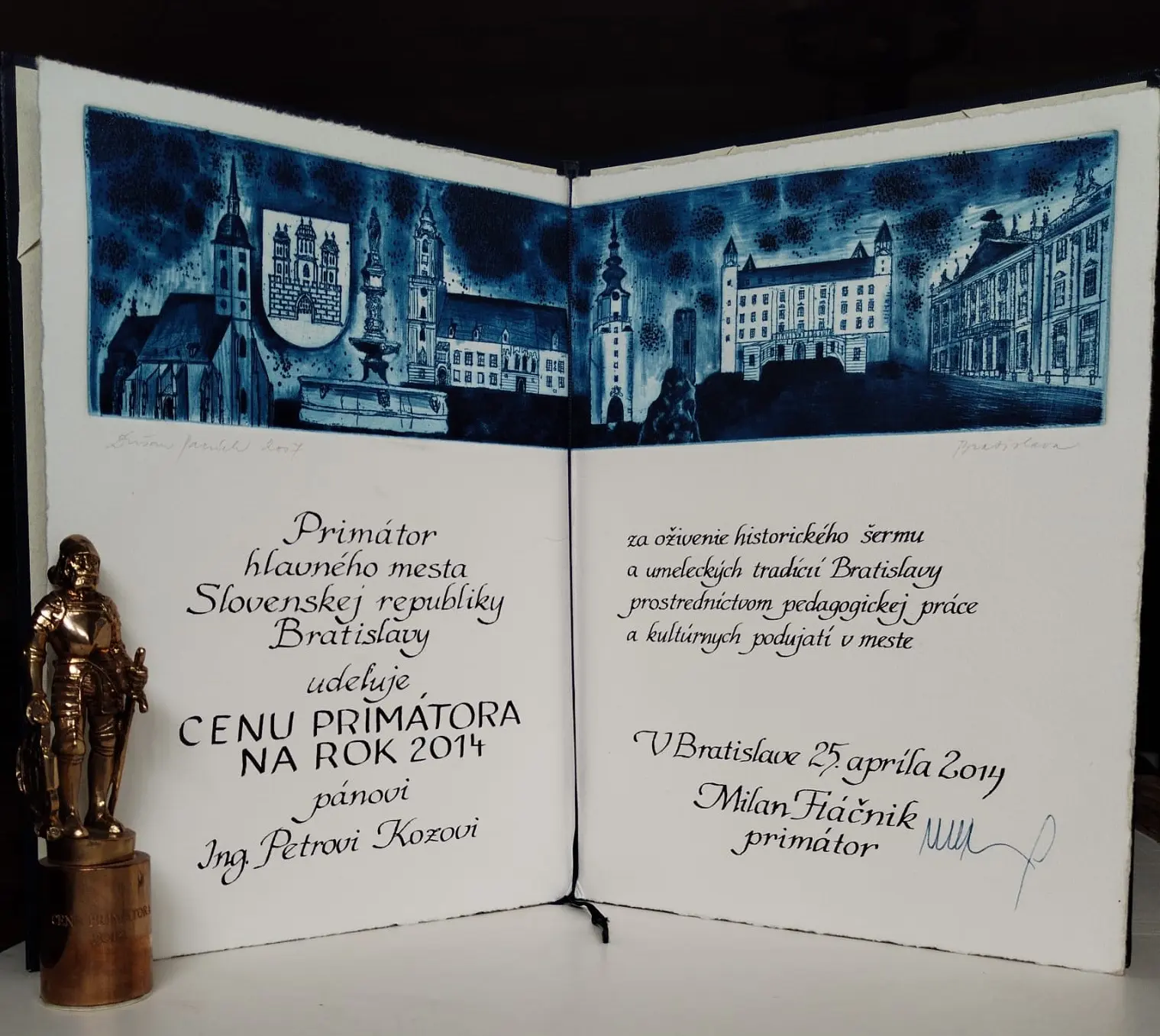 V piatok 25. apríla 2014 sa v Zrkadlovej sále Primaciálneho paláca konalo slávnostné podujatie – už XXII. ročník Ceny primátora mesta Bratislavy.